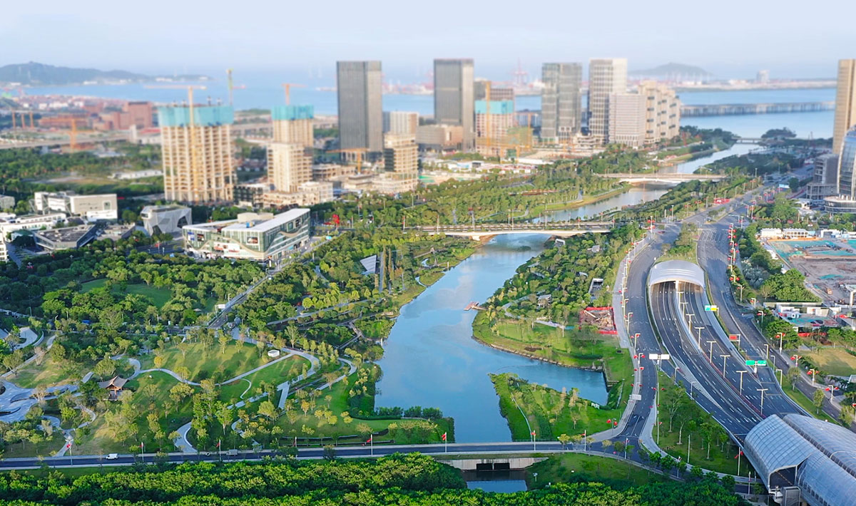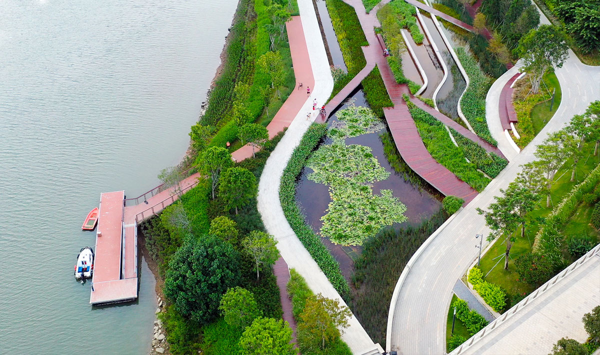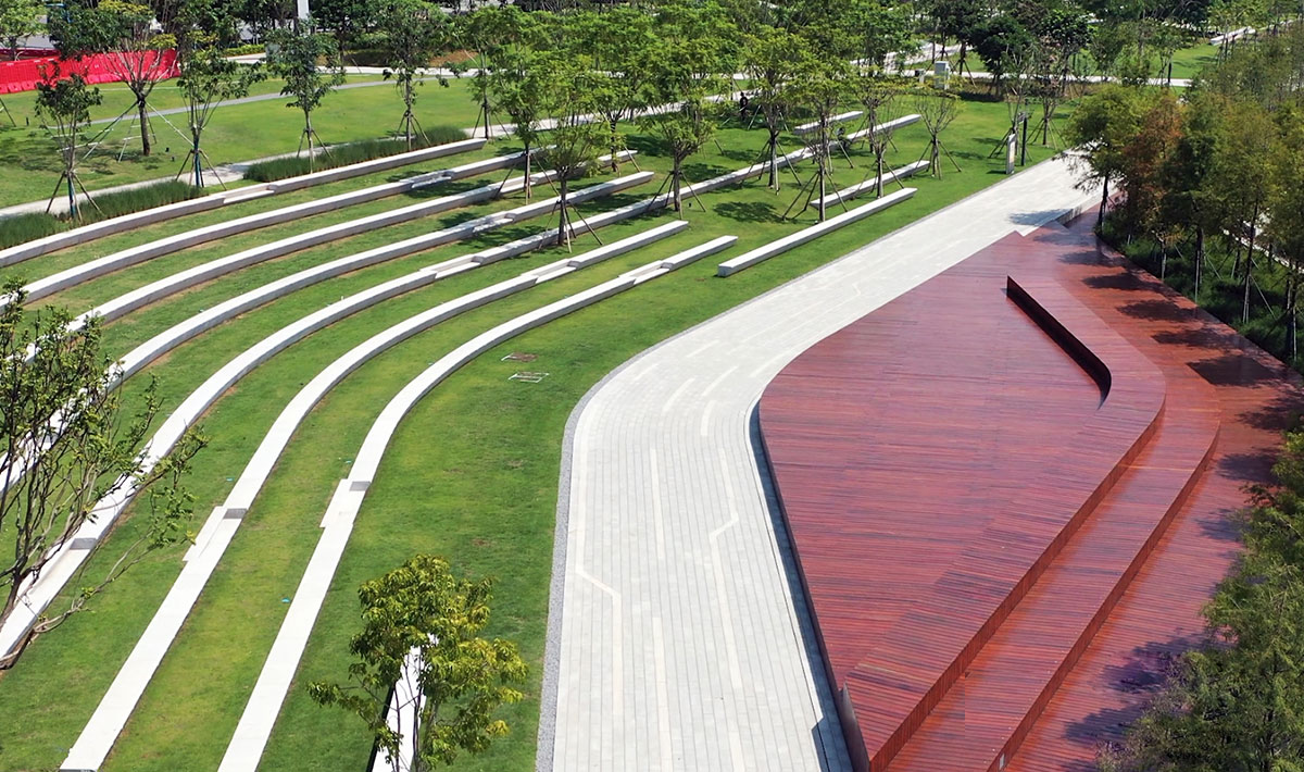 岭南围绕“前海绿芯”设计核心,坚持生态、活力、健康、可持续的先进城市的发展理念,借“一槽、两滩、两岸”的复合生态底盘为基底,通过严土质、强地形、控绿化,打造“森林步道”“林荫步道”“露天剧场”等多个特色节点,重构人与自然的关系。项目兼具城市排洪、视觉景观、自然展示、驻足漫游等功能,是具有鲜明特色、国际水准的前海第一大型水道公园。