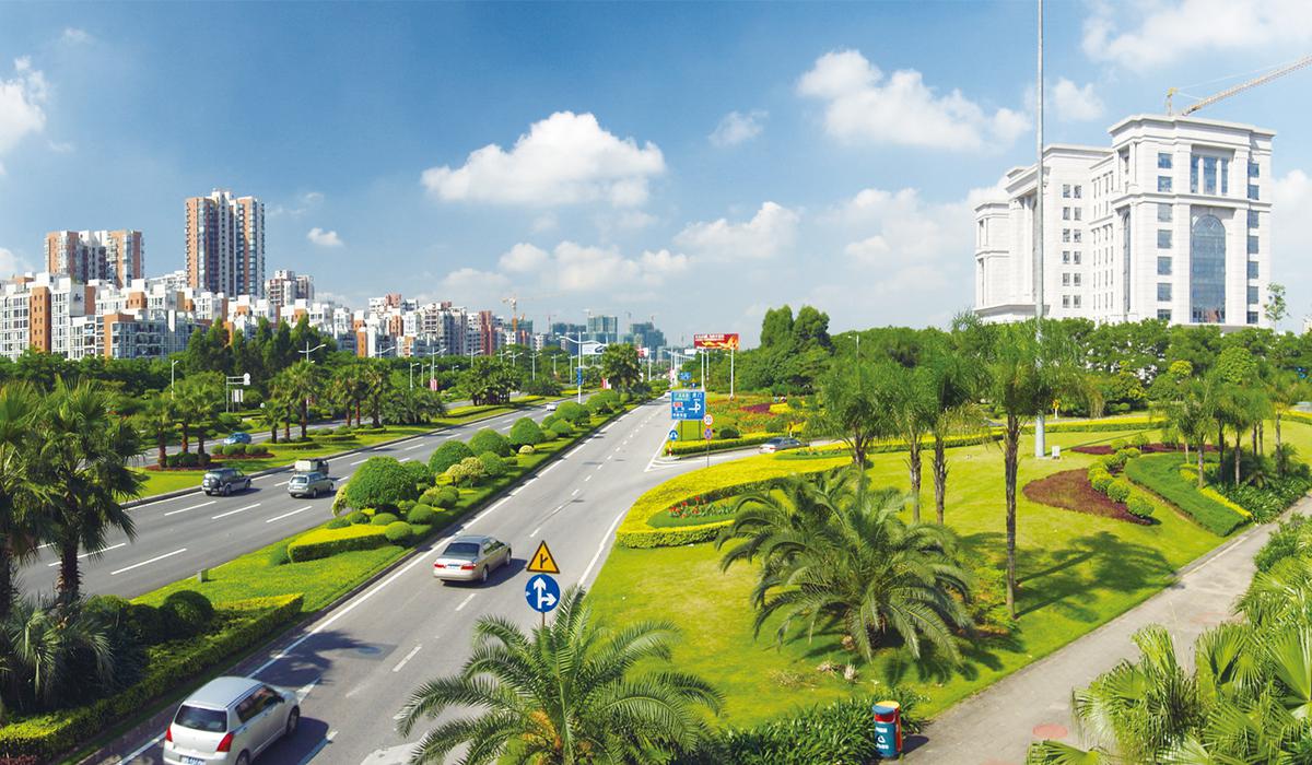 东莞大道景观工程便很好的体现了生态景观大道的艺术性和观赏性,它由岭南股份打造。东莞大道北起旗峰门前,南至石鼓高速公路入口,长 9.94公里, 双向八车道, 最宽达 189米 , 是广深高速公路进入东莞市区的门户。在岭南股份的打造下,大道路中央灌木起起伏伏,两侧浓密的行道树犹如“穿行森林”。不同种类、层次的园林绿化植物的组合,形成高低错落的林冠线。